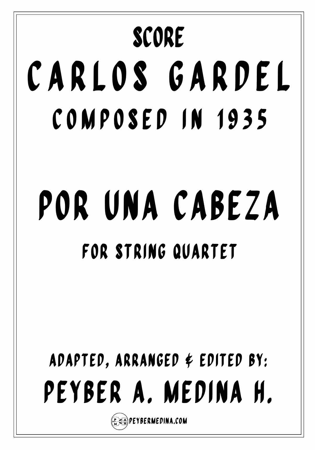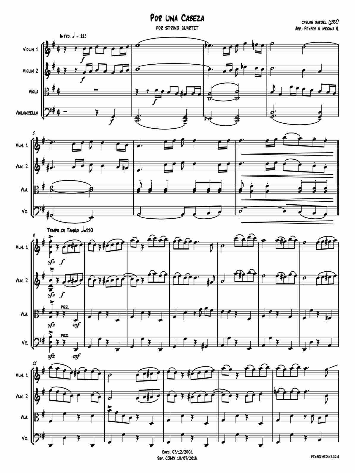 Carlos Gardel’s «Por Una Cabeza,» exquisitely arranged for String Quartet by Peyber A. Medina H.